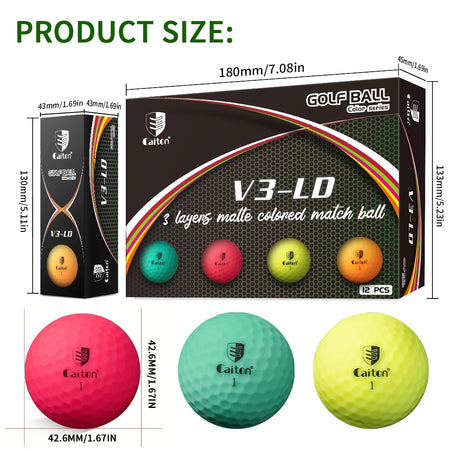 Upgrade your game with Caiton Colored Matte Pro Golf Balls. With three-layer performance, 332 dimple design, and bold matte colors, these golf balls combine distance, control, and style. Order your 12-piece set today and enjoy visibility, durability, and professional-level play on every round.