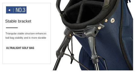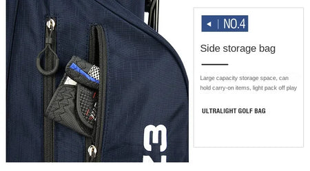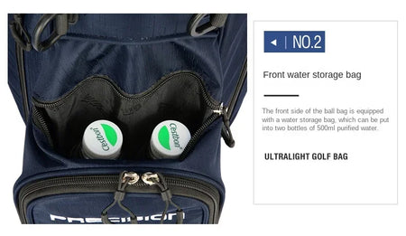 - Multiple storage pockets – front pocket large enough for 2 × 500 ml bottles; side pockets for balls, tees, markers; secure, weather-resistant zippers; smart separation rod hole design to avoid club tip collisions. :contentReference[oaicite:4]{index=4}